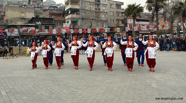 Kahramanmaraş Büyükşehir Belediyesi’nin Bu Yıl İkini Gerçekleştirdiği 1. Uluslararası Kahramanmaraş Kurtuluş Günü Halk Oyunları Gösterileri’nin İlki Gerçekleştirildi. Kahramanmaraş’ın düşman işgalinden kurtuluşunun 97. Yıldönümü kutlama etkinlikleri çerçevesince gerçekleştirilecek olan 1. Uluslar arası Kahramanmaraş Kurtuluş Günü Halk Oyunları Gösterilerine Kuzey Kıbrıs Türk Cumhuriyeti, Ukrayna, Makedonya, Bosna-Hersek, Adige ve Kosova ülkelerinin yanı sıra Trabzon, Ankara, Adıyaman, Trakya, İzmir ve Silifke Halk Oyunları Takımları olmak üzere 200 kişi katılıyor.Demokrasi Meydanı’nda gerçekleştirilen ilk programda Ankara, Adıyaman ile Kuzey Kıbrıs Türk Cumhuriyeti ile Makedonya ekipleri kendi yörelerine ait halk oyunlarını sergilediler.Burada bir açıklama yapan Büyükşehir Belediyesi Kültür ve Sosyal İşler Dairesi Başkanı Cevdet Kabakcı: “Kahramanmaraş’ın düşman işgalinden kurtuluşunun 97. Yıldönümü kutlama etkinlikleri çerçevesince Milli Mücadele Döneminde Maraş Sempozyumu ile 11. Ulusal Kurtuluş Güreş Turnuvamızı tamamladık. Bu yıl bir değişikliğe giderek 6 ülkeden ve 6 ayrı şehirden olmak üzere halk oyunları ekiplerini şehrimize davet ettik. 7-12 Şubat tarihleri arasında Demokrasi Meydanı, Atatürk Meydanı, Necip Fazıl Kısakürek Kültür Merkezi önü ve ilçelerimizde gösteriler sunulacak. Aynı zamanda 11 Şubat akşamı da tören alanında bütün halk oyunları ekipleri gösterilerini sergileyecekler. Tüm halkımızı 12 Şubat Kurtuluş Bayramı kutlama etkinliklerine bekliyoruz” diye konuştu.Demokrasi Meydanı’nda gerçekleştirilen halk oyunları gösterilerini izleyen Kahramanmaraşlılar etkinlikten oldukça memnun oldular ve alkışlarla destek verdiler.Halk Oyunları gösterileri akşam saat 19.00’da Göksun’da, 8 Şubat 2017 Çarşamba günü saat 14.00’te Atatürk Meydanı’nda, akşam saat 19.00’da Afşin’de, 9 Şubat Perşembe günü Necip Fazıl Kısakürek Kültür Merkezi önünde saat 14.00’de, Elbistan’da ise saat 19.00’da, 10 Şubat 2017 Cuma günü saat 14.00’te Demokrasi Meydanı’nda iki ülke ve iki şehir Halk Oyunları ekiplerinin katılımı ile gerçekleştirilecek.Beşinci program ise 11 Şubat 2017 akşamı tören alanında (Valilik Kavşağı) bütün ülke ve şehir halk oyunları ekiplerinin katılımı ile gerçekleştirilecek.