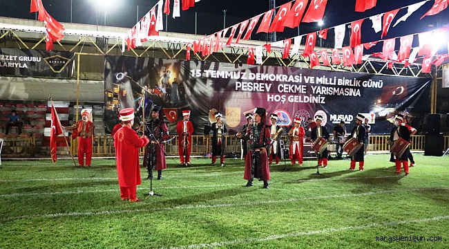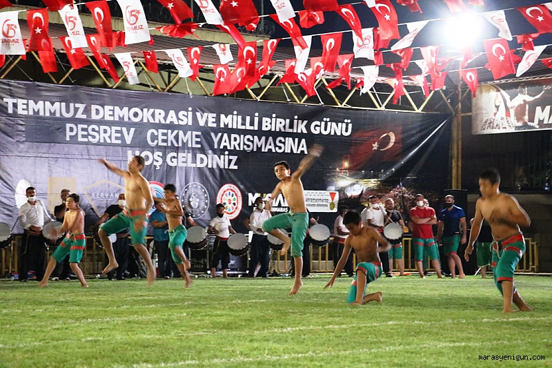 Kahramanmaraş’ta 15 Temmuz Demokrasi ve Milli Birlik günün yıl dönümü kutlama etkinlikleri kapsamında peşrev çekme yarışması düzenlendi. 4 kategoride düzenlenen yarışmada pehlivanlar hünerlerini sergiledi.