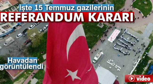 15 Temmuz gazileri ve şehit yakınları insan zinciri ile ‘Evet’ yazarak referandum tercihini açıkladı. Gazilerin ‘evet’i havadan görüntülendi.