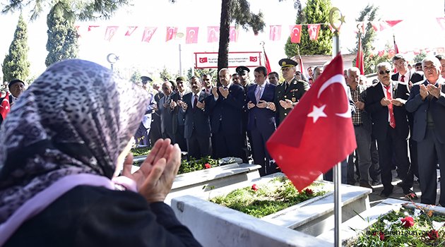 \r\n\r\nŞehitlikte tamamlanan programın ardından Mehmet Akif Ersoy Kültür Merkezi’ne geçen protokol mensupları burada hazırlanan programa katıldılar.