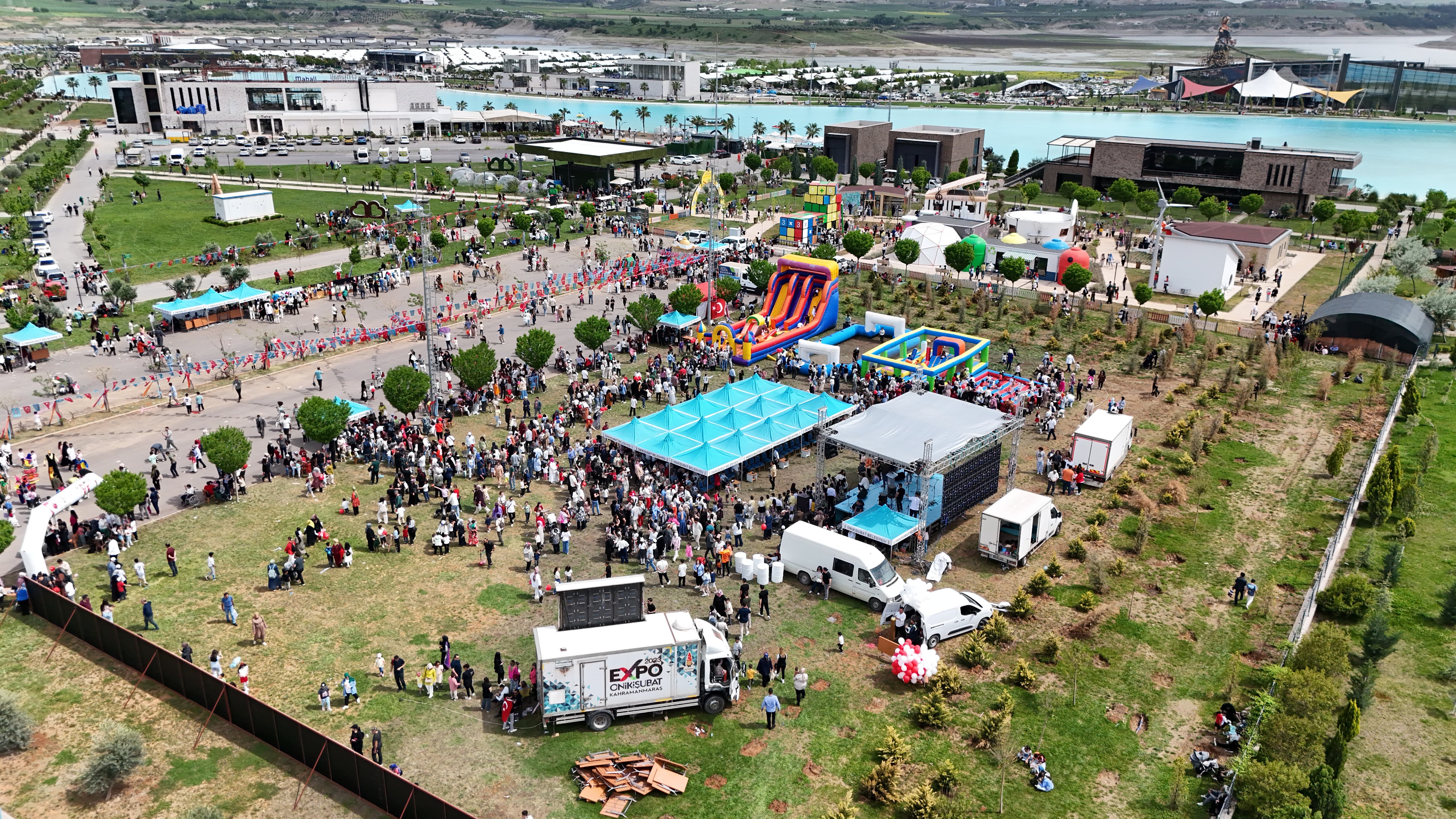 Her çocuğa sürpriz hediyelerin dağıtıldığı, çeşitli ikramların sunulduğu etkinlikte, bayram neşesi EXPO alanına taştı.
