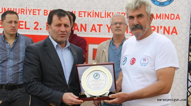 \r\n\r\n Yarışlar Saygı Duruşu ve İstiklal Marşımızın Okunmasının Ardından, Kahramanmaraş Atlı Binicilik Spor Kulübü Başkanı Muhsin Kılıçsallayan'ın açılış konuşmasının akabinde, Geleneksel Spor Dalları İl Temsilcisi Mustafa Ağca ve Gençlik Hizmetleri ve Spor İl Müdürü Ali İhsan Kabakcı'da yarışlar için alana gelen misafirlere ve binicilere hitap ettiler. Kabakcı konuşmasında "Uzun yıllardır ilimizde ata sporumuz adına güreşler organize ediliyordu, ama geçen yıl itibariyle Kahramanmaraş Atlı Binicilik Spor Kulübü'nün kurulması ile bu tür organizasyonlar hız kazandı. Bizler de Gençlik Hizmetleri ve Spor İl Müdürlüğü olarak bu tür programlara destek verdik ve vermeye devam edeceğiz." dedi.\r\n\r\n Kahramanmaraş At Binicilik Spor Kulübü Başkanı Muhsin Kılıçsallayan Rahvan At Yarışlarına verdiği desteklerden dolayı Gençlik Hizmetleri ve Spor İl Müdürü Ali İhsan Kabakcı'ya Plaket takdim etti.\r\n\r\n Rahvan At yarışlarına tay, küçük orta, büyük orta, başaltı ve baş at kategorilerinde bölge illerden 60 a yakın at yarıştı. Baş at kategorisinde Kahramanmaraş'tan Talip Şahin birinci olurken, yine Kahramanmaraş bölgesi binicilerinden Muhsin Kılıçsallayan ikinci ve Nizip bölgesinden İzzet Kaycı üçüncü olarak tamamladı. Geleneksel Rahvan At Yarışlarında her kategoride ilk üçe giren binicilere kupa takdim edildi.\r\n\r\n \r\n\r\n \r\n