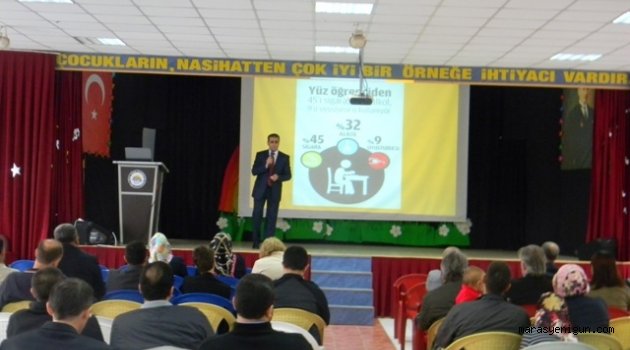 Okul Rehberlik (PDR) Uzmanı ve Aile Danışmanı Davut Bayazıt tarafından okul konferans salonunda gerçekleştirilen seminerde, okul Rehberlik servisinin işlevi, çocuklarda düzenli ders çalışma alışkanlığı, öğrenci takibi, dikkat eksikliği, davranış problemleri, arkadaş seçimi, ergenlik konularında ve 2016 TEOG sınavı içeriği hakkında velilere bilgi verildi.