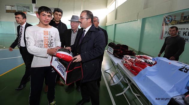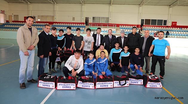\r\n\r\nGençlik ve Spor İlçe Müdürlüğü Salonu'nda gerçekleşen ziyarette Belediye Başkanı Mehmet Fatih Güven Afşin Belediyespor Güreş Takımı'nın antrenmanını izledikten sonra, ata sporumuz güreşi çocuklarına sevdirdikleri için başta ailelerine ve spor hocalarına teşekkür etti.\r\n\r\nBaşkan Güven geleceğin pehlivanlarına eşofman, ayakkabı ve spor malzemeleri hediye etti.\r\n\r\nGenç yaşta spor ile uğraşan bu geçlerin gelecekte büyük başarılara imza atacaklarını belirten Başkan Güven konuşmalarında şunları belirtti, "Afşin Belediyespor olarak başta ata sporumuz Güreş olmak üzere Futbol ve Wushu alanlarında faaliyetlerimiz var. Afşin’de gençleri sosyal hayatın zararlı alışkanlıklarından uzaklaştırarak örnek nesiller yetiştirmek amacı ile spora teşvik ediyoruz. İlçemizde birçok başarılı sporcumuz var. Avrupa ve Türkiye derecesi alan sporcularımızın yanı sıra bu platform Milli takımımıza da sporcular yetiştiriyor. Güreş ve Wushu branşında ülkemiz genelinde çok iyi bir yerdeyiz. Sporcularımız bu alanlarda büyük başarılar kazanarak güzel sonuçlar alıyorlar. Her şey geleceğimizin teminatı gençlerimiz için. Gençlik ve Spor İlçe Müdürlüğümüz ile birlikte oluşturduğumuz projelerle gençlerimizi sevdikleri spor dallarına yönlendirecek çalışmalar yapıyoruz. Bu vesile ile burada çalışma yapan gençlerimize başarılar diliyorum. Afşin’imizi, Kahramanmaraş’ımızı ve Ülkemizi branşlarında en iyi şekilde temsil edeceklerine inancım tamdır. Bu gençlerimizin arasında da ebetteki Milli takım sporcularımız çıkacak ve Ailelerine, Vatana, Millete hayırlı evlatlar yetişecek.” ifadelerini kullandı.\r\n\r\nGenç güreşçilere eşofman, ayakkabı ve spor malzemeleri dağıtımı sonrası hatıra fotoğrafı çekilmesinin ardından program son buldu.\r\n