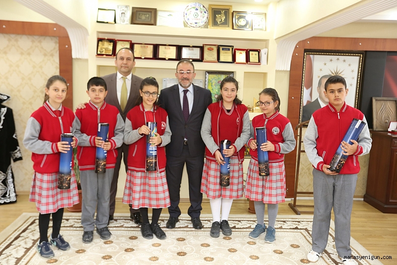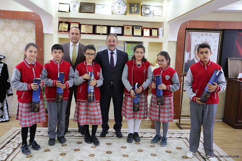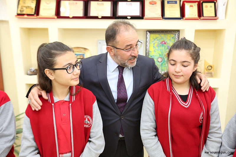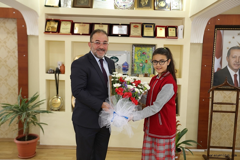 Cumhuriyet Ortaokulu öğrencileri, 23 Nisan Ulusal Egemenlik ve Çocuk Bayramı dolayısıyla Afşin Belediye Başkanı Mehmet Fatih Güven'i makamında ziyaret etti.23 Nisan 1923'ün Türkiye Büyük Millet Meclisinin kuruluş yıldönümü olduğunu ifade eden Belediye Başkanı Güven, bağımsızlığa adım atılan ilk günün çocuklara, geleceğe hediye edildiğini söyledi. Göreve geldikleri ilk günden bugüne tüm çabalarının gelecek nesiller için güzel ve yaşanabilir Afşin oluşturmak için mesai harcadıklarını dile getiren Güven, şöyle devam etti: "Gazi Mustafa Kemal Atatürk bu güzel günü çocuklarımıza hediye etti. Bu güzel ülkemizi bizlere bırakmışlar. Bundan sonraki süreçte bizlere düşen en önemli görev bu ülkeyi dünya mazlumlarına umut olacak güçlü, kuvvetli birlik ve beraberlik içerisinde bir olan bir ülke haline getirebilmektir. Geleceğimizin teminatı çocuklarımız ile birlikteyiz. Onlar bizlerin, geleceğinin teminatı.Tüm dünyadaki çocuklarımızın 23 Nisan Ulusal Egemenlik ve Çocuk Bayramı kutlu olsun” Belediye olarak öğrencilerin faydalanması için Rabia Parkı'nda trafik eğitim parkuru hazırladıklarını ifade eden Güven, burada trafik eğitimi derslerini uygulamalı olarak yapabileceklerini söyledi. Başkan Güven, öğrencilerin merakı üzerine makamda bulunan 100 yıllık gramofon ‘da taş plak çalarak müzik dinletti. Güven, ziyarette öğrencilere satranç takımı hediye etti.
