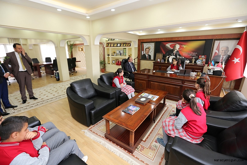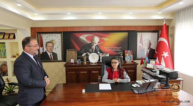 Afşin Belediye Başkanı Mehmet Fatih Güven, 23 Nisan Ulusal Egemenlik ve Çocuk Bayramı dolayısıyla koltuğunu 5. sınıf öğrencisi İremsu Alkılınç'a bıraktı.