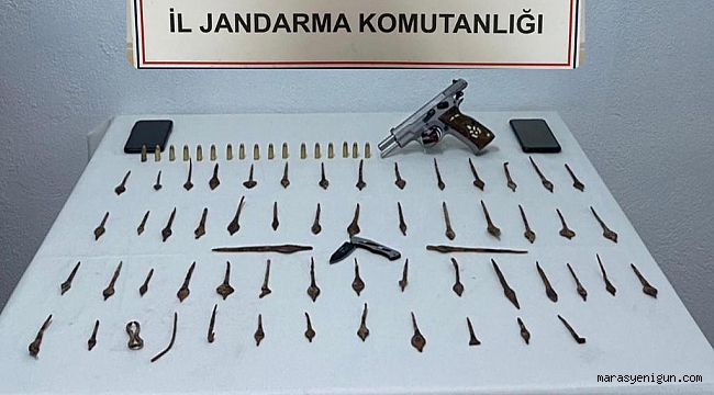 Kahramanmaraş’ın Afşin ilçesinde jandarma ekipleri tarafından yapılan operasyonda Roma dönemine ait tarihi eserler ele geçirildi.