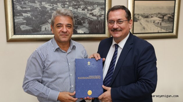 Kahramanmaraş İl Kültür Turizm Müdürlüğü tarafından hazırlanan “Akdeniz’in Altın Kenti Kahramanmaraş” adlı kitap İl Kültür Turizm Müdürü Seydihan Küçükdağlı tarafından KMTSO Başkanı Serdar Zabun’a takdim edildi.\r\n\r\n