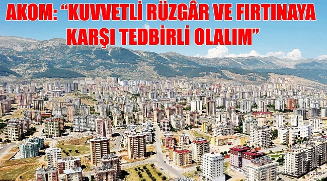 Kısa Adı AKOM Olan Kahramanmaraş Büyükşehir Belediyesi Afet ve Koordinasyon Merkezi ilimizde Salı 31 Ocak 2017 Salı günü öğle saatlerinden itibaren şiddetini artırması beklenen kuvvetli rüzgar ve fırtına karşı dikkatli olunmasını istedi.