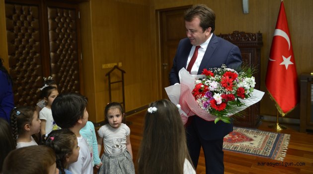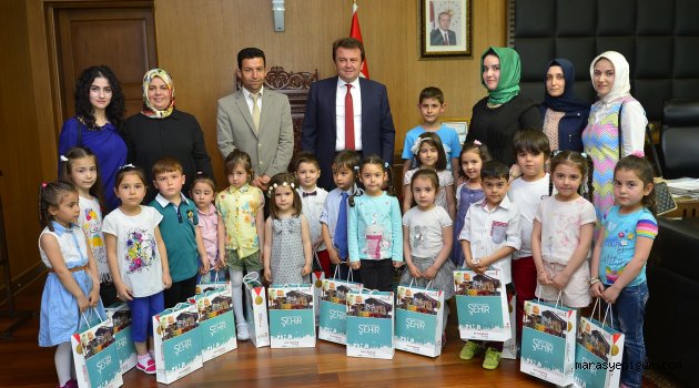 Başkanlık makamında gerçekleşen ziyarete Nene Hatun Anaokulu Müdürü Abdullah Korkmaz, öğretmenler Mürşide Sena Görgülü ve Fatma Gülçin Kuzdan ile öğrenciler katıldı.