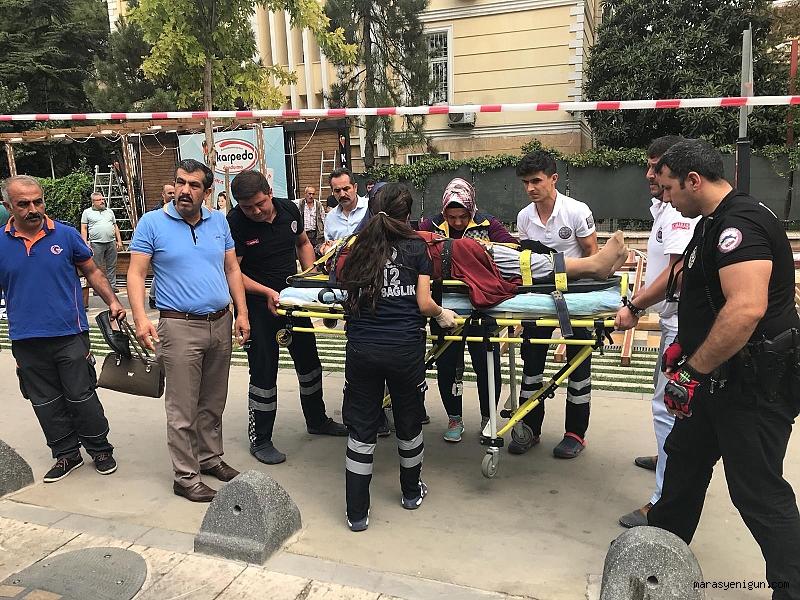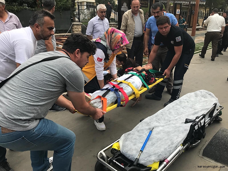 Kaldırımda yürüyen diğer vatandaşların yardımıyla tabelanın altından çıkarılan anne ve kızı sağlık görevliler tarafından Necip Fazıl Şehir Hastanesine kaldırıldı.