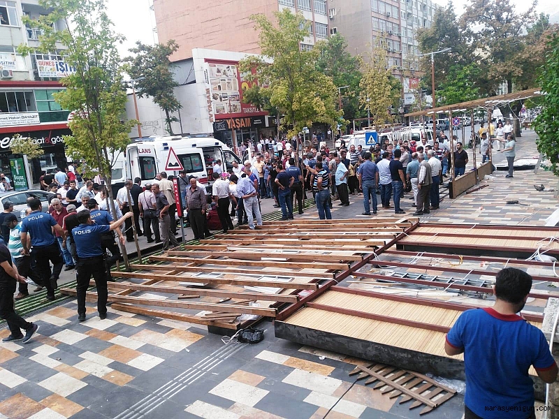 Kahramanmaraş’ta kaldırımda yürürken üzerlerine reklam tabelası düşen anne ve kızı yaralandı.