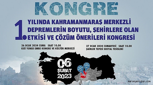 Büyükşehir Belediyesi, Valilik ve KSÜ iş birliğiyle 6 Şubat depremlerinin 1’nci yıl dönümü dolayısıyla 26 ve 27 Ocak tarihlerinde “1. Yılında Kahramanmaraş Merkezli Depremlerin Boyutu, Şehirlere Olan Etkisi ve Çözüm Önerileri Kongresi” düzenlenecek.