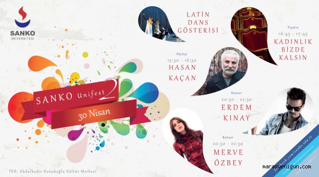 \r\n\r\nAkademik ve bilimsel çalışmalarla olduğu kadar, sosyal ve kültürel faaliyetlerle de adından söz ettiren SANKO Üniversitesi’nde bahar şenliği coşkusu yaşanıyor.\r\n\r\nSANKO Üniversitesi tarafından bu yıl ikincisi düzenlenen “SANKO Unifest 2”, 30 Nisan 2016 tarihinde gerçekleştirilecek.\r\n\r\nSpor turnuvaları ile başlayacak şenlik programı, farklı aktivitelerle devam edecek.\r\n\r\nBirbirinden değerli isimlerin konuk olarak katılacağı şenlikte, karikatürist, oyuncu ve film yapımcısı Hasan Kaçan da bir söyleşiyle yer alacak.\r\n\r\nBesteci, aranjör ve prodüktör Erdem Kınay ve pop müziğin genç ismi Merve Özbey’in şarkılarıyla renk katacağı şenlikte, öğrenciler de dans ve tiyatro gösterileriyle, hünerlerini sergileyecek\r\n\r\nŞenliğe, SANKO Üniversitesi öğrencileri ve davetliler katılabilecek.\r\n\r\n \r\n\r\n \r\n\r\n \r\n\r\n \r\n