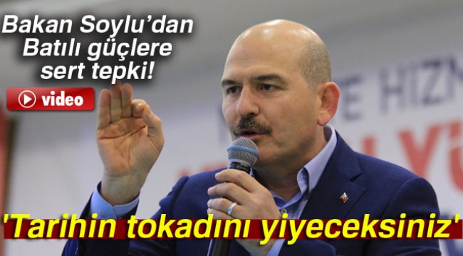İçişleri Bakanı Süleyman Soylu, Türkiye’nin üzerine oynayan Batılı güçlere seslenerek “Tarihin tokadını yiyeceksiniz. Bakın büyük bir hayal kırıklığına uğrayacaksınız ve bu coğrafyadan büyük maliyetlerle ayrılacaksınız” dedi.