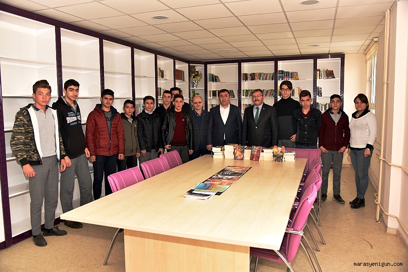 Eğitim ve eğitimcinin yanında olan ve geleceğin teminatı çocukların eğitim için türlü desteği veren Göksun Belediye Başkanı Hüseyin Coşkun Aydın, İlçe Milli Eğitim Müdürü Halit Demirtaş ile birlikte Göksun Anadolu İmam Hatip Lisesini ziyaret etti.Ziyarette Okul Müdürü Mahirbey Kaya ile bir süre sohbet eden Başkan Aydın, okul kütüphanesine Türk ve Dünya edebiyatının seçkin eserlerinden oluşan kitap seti hediye etti. Öğrenci ve öğretmenlerin büyük ilgi gösterdiği Başkan Aydın, öğrencilerin, okul kütüphanesinin zenginleştirilmesine destek taleplerini de geri çevirmedi. Başkan Aydın’ın talimatı ile yeni kitap setleri alınarak okula hediye edildi.