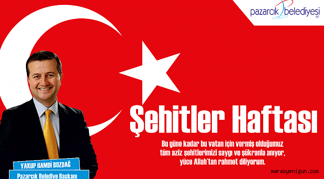 Pazarcık Belediye Başkanı Yakup Hamdi Bozdağ, 14 Nisan Şehitler Haftası dolayısıyla bir mesaj yayınladı.
