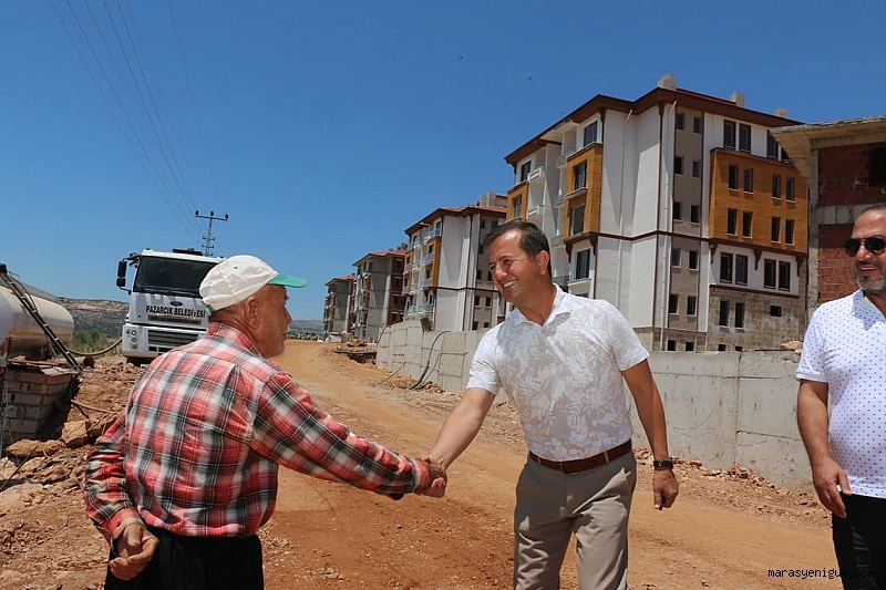 İnşaat çalışmaları hakkında yetkililerden bilgi alan Başkan Bozdağ; "Yükseklikleri zemin +3 olan konutların 105’i 2+1, 36’i ise 3+1 planında inşa ediliyor. Projelendirme yapılırken cephelerde Kahramanmaraş’a ait yerel mimari göz önünde bulunduruldu. Yöreye uygun az katlı, yatay mimari konseptinde inşa edilen projede, cephelerde yöresel taş kaplama, ahşap görünümlü kaplamalar, dekoratif pencereler, söveler, çatıda ve cephelerde Türk evini yansıtan çıkmalar ve payandalar kullanılıyor. Son derece kaliteli malzemeler kullanılarak güzel bir çalışma yapılıyor. İnşallah tamamlandığında 141 ailemize umut olup ev sahibi olacak. İlçemize hayırlı olsun" dedi.