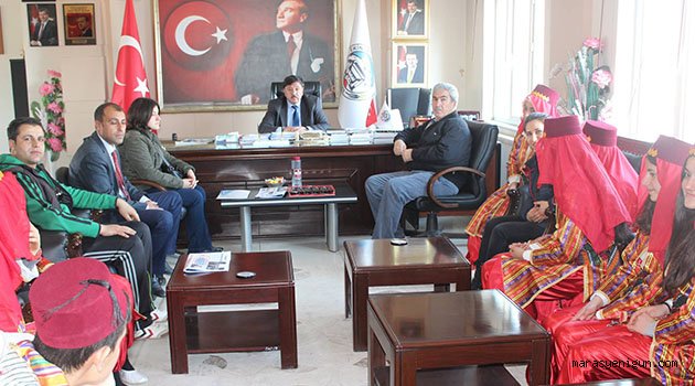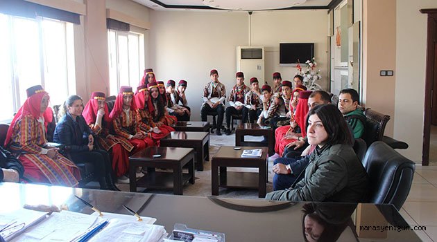 Ekinözü Çok Programlı Anadolu Lisesinde okuyan öğrencilerden oluşan halk oyunları ekibi Belediye Başkanı Nursi Çeleğen'i ziyaret etti.