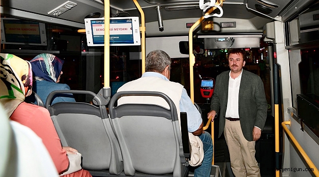 BAŞKAN ERKOÇ BELEDİYE OTOBÜSLERİNİ DENETLEDİ
