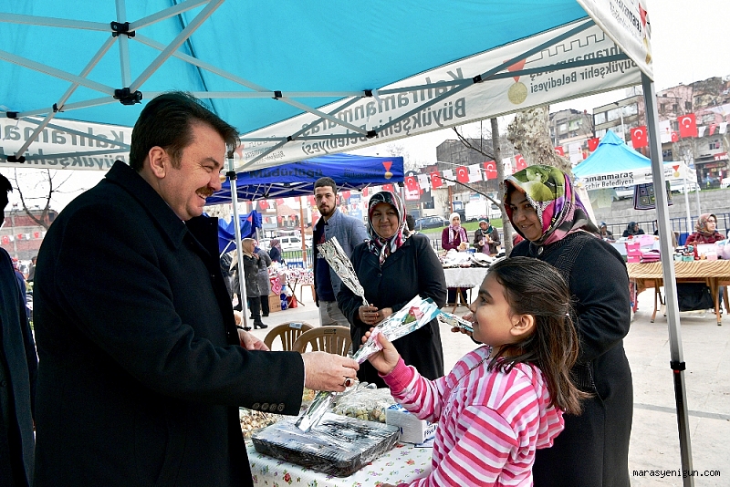 Kahramanmaraş Büyükşehir Belediye Başkanı Fatih Mehmet Erkoç, 8 Mart Dünya Kadınlar günü dolayısıyla Demokrasi Meydanı’nda kurulan KAMEK Kermesi’nde kadılara karanfil takdim ederek günlerini kutladı.