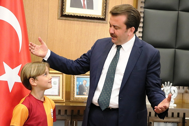Kahramanmaraş’ta keşfedilip Galatasaray’ın kadrosuna dahil ettiği, Ali Osman Kalın’ı Başkan Erkoç makamında kabul etti.
