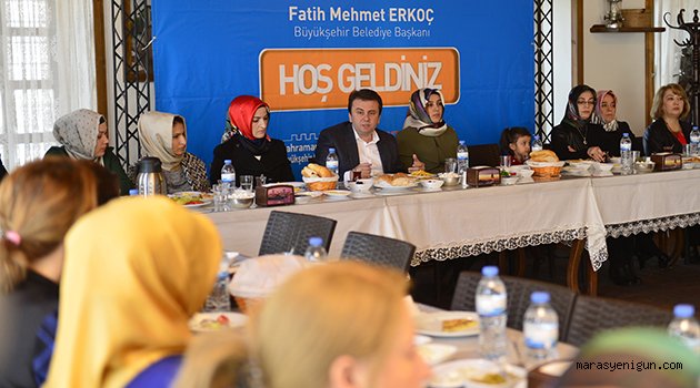 Büyükşehir Belediyesi Kültür ve Sosyal İşler Dairesi Başkanlığı Kadın ve Aile Şube Müdürlüğü’nce 8 Mart Dünya Kadınlar Günü münasebetiyle Katiphan’da gerçekleştirilen sabah kahvaltısına katılan Başkan Erkoç, Büyükşehir belediyesi olarak yaptıkları çalışmaları anlattı.