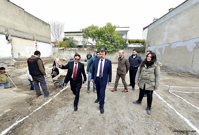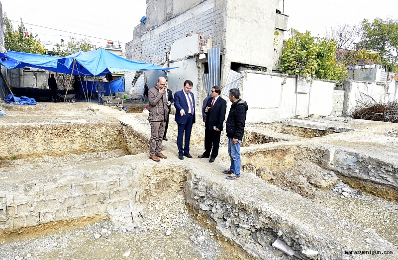 Kahramanmaraş Büyükşehir Belediye Başkanı Fatih Mehmet Erkoç, kazı çalışmaları devam eden Germenicia Antik kentinde incelemelerde bulundu.