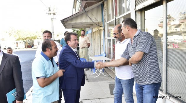 Kahramanmaraş Büyükşehir Belediye Başkanı Fatih Mehmet Erkoç, asfalt çalışmaları yapılan 3. Toptancılar Çarşısında esnafları ziyaret etti.