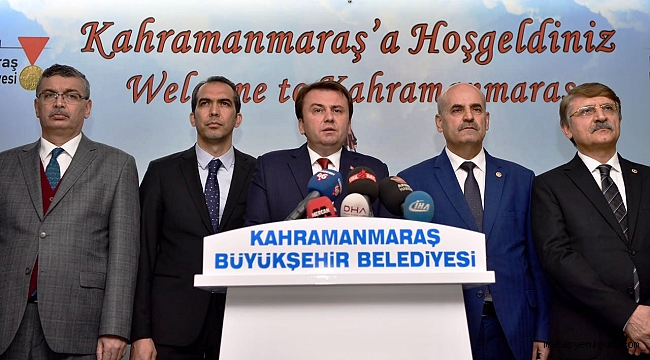 Kahramanmaraş Büyükşehir Belediye Başkanı Fatih Mehmet Erkoç, 17 Şubat 2017 Cuma günü Müftülük Alanı’nda Cumhurbaşkanı Recep Tayyip Erdoğan’ın referandumun ilk toplantısını Kahramanmaraş’ta yapacağını belirterek tüm halkı davet etti.Kahramanmaraş Büyükşehir Belediyesi Hizmet Binası girişinde AK Parti Kahramanmaraş Milletvekilleri Celalettin Güvenç, İmran Kılıç, İl Başkanı Ahmet Özdemir, İlçe Belediye Başkanları Necati Okay, Hanefi Mahçiçek, İlçe Başkanları Fırat Görgel ve Ömer Bilal Debgici, AK Parti Kahramanmaraş eski Milletvekili Fatih Arıkan, Dulkadiroğlu Belediye Başkan Yardımcısı Mehmet Akif Kahveci ile birlikte bir basın açıklaması yapan Büyükşehir Belediye Başkanı Erkoç, Cumhurbaşkanı Recep Tayyip Erdoğan’ın 17 Şubat 2017 Cuma günü referandum tarihinin açıklanmasının ardından ilk toplantısını Kahramanmaraş’ta yapacağını duyurdu.Başkan Erkoç, basın mensuplarına hitaben yaptığı açıklamada: “Öncelikle 12 Şubat Kurtuluş Bayramımızı en iyi şekilde kutlamamıza ve dünyaya duyurma noktasında gösterdiğiniz gayretlerden dolayı başta siz değerli basın mensuplarına, görevlerini en iyi şekilde icra eden emniyet mensuplarımıza, bir hafta boyunca kurtuluş coşkusunu yaşatan mahalle çetelerimize ile muhtarlarımıza ve Kahramanmaraş Halkımıza çok teşekkür ediyorum.Cuma günü Saygıdeğer Cumhurbaşkanımız Recep Tayyip Erdoğan Kahramanmaraş’ta olacak ve tüm halkımıza hitap edecektir. 17 Şubat 2017 Cuma günü öğleden sonra Müftülük Meydanına tüm halkımızı davet ediyorum. 16 Nisan’da referandum tarihi resmi olarak açıklanmasının ardından Sayın Cumhurbaşkanımız Recep Tayyip Erdoğan, ilk toplantısını mübarek Cuma günü ilimizde yapacaktır. Müftülük Meydanı’nda hem toplu açılış töreni yapacak hem de halkımıza hitap edecektir.Türkiye çok önemli bir süreçten geçmekte ve tarihi günler yaşamaktadır. 16 Nisan bizim için Aziz Milletimizin geleceği için çok önemli, aynı medeniyeti ve maneviyatı paylaştığımız yüz milyonlarca insanlar için çok önemli bir gün. Güçlü Türkiye’nin ve dünyanın huzuru içinde çok önemlidir. Kahramanmaraş halkı ülkenin istikbali için her zaman dimdik durmuştur. 16 Nisan’da da Kahramanca bir tavır göstererek Kahramanmaraş halkı Evetlerde Türkiye’de birinci olacaktır.Bu tarihi günde, Referandum tarihinin onaylanması ve ilan edilmesinden sonra ilk toplantı burada olacak. Bu tarihi günde, mübarek Cuma gününde, 97 yıl önceki tarihimizi kutladığımız bu günlere denk gelmesiyle birlikte çok önemli bir güne denk gelen bu ziyarete halkımızın iştirak etmesi çok önemlidir.Cuma günü saat 14.00’da halkımızla buluşacak olan Cumhurbaşkanımız, Kahramanmaraş’tan dünyaya seslenerek önemli mesajlar verecektir. Dünya’ya buradan hep beraber mesaj verelim bu tarihi süreçte halkımız meydanları doldursunlar.Kahramanmaraş’ta yaşayan 1 milyon 112 bin insanımızı, partili partisiz tüm Kahramanmaraş halkımızı Müftülük Meydanına davet ediyorum. Cumhurbaşkanımızın geleceği gün partiler üstü bir gün, tarihi bir çağrı olacak o gün de meydandan Cumhurbaşkanımızla birlikte Dünya’ya seslenmek için Müftülük meydanında bekliyoruz” diye konuştu.Basın mensuplarının yönelttiği soruları da cevaplandıran Başkan Erkoç, katılımlarından dolayı basın mensuplarına teşekkür etti.