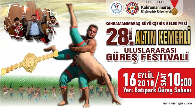 Kahramanmaraş Büyükşehir Belediyesi tarafından bu yıl 28.’si düzenlenecek olan Geleneksel Altın Kemerli Uluslararası Güreş Festivali 16 Eylül 2018 günü saat 10.00 da Batıpark Güreş Sahasında yapılacağını hatırlatan Başkan Erkoç: “Atasporumuz güreşin gelecek kuşaklara aktarılması için geleneksel olarak sürdürdüğümüz Altın Kemerli Uluslararası Güreş Festivalimize tüm halkımızı bekliyoruz. Büyükşehir Belediyesi olarak sporun gelişmesi ve şehrimizdeki lisanslı sporcu sayımızın artması için çalışmalarımıza aralıksız devam ediyoruz. Bu gayretlerimizin meyvelerini de almaya başladık. Güreşçilerimiz Dünya genelinde yapılan müsabakalarda Ayyıldızlı Albayrağımızı dalgalandırarak gurur kaynağımız olmaktalar. “Güneyin Kırkpınarı” olarak adlandırılan Kahramanmaraş’ımızda güreş sporunun daha geniş kitlelere ulaşması için hizmetlerimize devam edeceğiz. Tüm güreşsever halkımızı çeşitli ülkelerden gelecek ve uluslararası boyutta olan güreşlerimize bekliyoruz” dedi.Kahramanmaraş Büyükşehir Belediyesi tarafından Minikler ve Büyükler olmak üzere iki kategoride gerçekleşecek olan Uluslararası Güreş Festivaline miniklerde 14 sıklette büyüklerde ise 8 sıklet olmak üzere toplamda 22 sıklette kıran kırana bir mücadele yaşanacak.Atasporumuz güreşin gelecek kuşaklara aktarılması adına spora ve sporcuya önem veren Kahramanmaraş Büyükşehir Belediyesi tarafından düzenlenecek güreş festivaline Türkiye’nin çeşitli illerinden gelecek güreşçilerin haricinde Rusya, İran, Dağıstan, Azerbaycan, Çeçenistan, Gürcistan ve Bulgaristan olmak üzere toplamda 8 ülke katılacak.