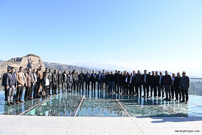 24 Kasım Öğretmenler Günü dolayısıyla Ali Kayası Cam Teras ve Turizm Tesisleri’nde düzenlenen programda okul idarecileriyle bir araya gelen Başkan Güngör, “Bizleri bugünlere getiren öğretmenlerimizin ellerinden öpüyor, ahirete irtihal eden tüm öğretmenlerimize de Allah’tan rahmet ediliyorum. Tüm öğretmenlerimizin 24 Kasım Öğretmenler Günü’nü kutluyorum” dedi.Kahramanmaraş Büyükşehir Belediye Başkanı Hayrettin Güngör, 24 Kasım Öğretmenler Günü vesilesiyle Ali Kayası Cam Teras ve Turizm Tesisleri’nde düzenlenen programda İl Milli Eğitim Müdürü Yusuf Kahraman ve okul idarecileriyle bir araya geldi. Tamamlanmak üzere olan Ali Kayası Cam Teras ve Turizm Tesisleri’nde katılımcılarla birlikte incelemelerde bulunan Başkan Hayrettin Güngör, tesisteki son duruma ilişkin de bilgiler aktardı. Programda konuşan İl Milli Eğitim Müdürü Yusuf Kahraman, “24 Kasım Öğretmenler Günü dolayısıyla düzenlenen bu program için Büyükşehir Belediye Başkanımız Sayın Hayrettin Güngör’e gönülden teşekkür ediyorum. Tüm öğretmenlerimizin Öğretmenler Günü’nü kutluyorum” dedi.ÖĞRETMENLER GÜNÜ KUTLU OLSUNTüm öğretmenlerin 24 Kasım Öğretmenler Günü’nü tebrik eden Büyükşehir Belediye Başkanı Hayrettin Güngör, “24 Kasım Öğretmenler Günü dolayısıyla bugün Ali Kayası Cam Teras’ta bir araya geldik. Öncelikle davetimize icabet eden herkese teşekkür ediyoruz. Bizleri bugünlere getiren öğretmenlerimizin ellerinden öpüyor, ahirete irtihal eden tüm öğretmenlerimize de Allah’tan rahmet ediliyorum. Tüm öğretmenlerimizin 24 Kasım Öğretmenler Günü’nü kutluyorum” dedi.ÖNEMLİ ZİYARETÇİ POTANSİYELİNE SAHİP BİR MEKÂNAli Kayası Cam Teras’a ilişkin katılımcılara bilgiler aktaran Başkan Hayrettin Güngör, “Kahramanmaraş’ımız; tarihi ve doğal miras olarak çok büyük zenginliklere sahip.Güçlü hikâyesi ve tarihiyle şehrimizin en önemli doğal güzelliklerinden birisi de Ali Kayası. 3 yıl önce çalışma arkadaşlarımızla Ali Kayası’na bir ziyaret gerçekleştirdik ve bu mekânı turizme kazandırmak için projemizi hazırladık, çalışmalara başladık. Projemizin ilk etabı tamamlanmak üzere. Kahramanmaraş’ımızın doğal güzelliklerine yakışır, önemli ziyaretçi potansiyeline sahip bir mekân oldu. Projenin ilk etabında buraya restoran, ahşap yürüyüş alanları, cam teras ve otopark kazandırdık. İnşallah önümüzdeki günlerde bu tesisin resmi açılışını gerçekleştireceğiz. Ayrıca buraya ulaşım için standardı oldukça yüksek bağlantı yolu kazandırdık. Devamındaki etaplarda ise; buradaki iki kaya arasına bir köprü inşa edeceğiz, Menzelet Barajı’ndan buraya tekneyle bağlantı sağlayacağız. Yine bölgede doğaseverler için kamp alanları oluşturacağız” diye konuştu.