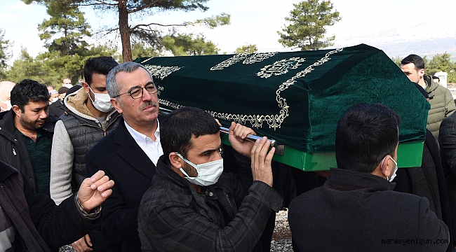Büyükşehir Belediye Başkanı Hayrettin Güngör, vefat eden teyzesi Hatice Boyraz’ın cenaze törenine katıldı. Kapıçam Mezarlığı’nda gerçekleştirilen cenaze töreninde kent protokolü ve vatandaşlar Başkan Güngör’ün acısını paylaştı.Kahramanmaraş Büyükşehir Belediye Başkanı Hayrettin Güngör, vefat eden teyzesi Hatice Boyraz’ın (75) cenaze törenine katıldı. Kapıçam Mezarlığı’nda gerçekleştirilen cenaze töreninde Vali Ömer Faruk Coşkun, İl Jandarma Komutanı Mustafa Özdurhan, AK Parti İl Başkanı Fırat Görgel, Aile ve Sosyal Hizmetler İl Müdürü Mutlu Kaya, ilçe belediye başkanları, kaymakamlar ve çok sayıda vatandaş yer aldı. Teyzesini kaybetmekten duyduğu üzüntüyü ifade eden Başkan Güngör, “Anne yarım, Hatice Teyzemi rahmet-i rahmana uğurladık. Rabbim rahmetiyle muamele eylesin” dedi.