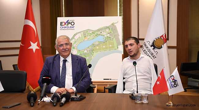 Başarılarıyla Kahramanmaraş’ın gururu olan Dünya ve Avrupa Şampiyonu milli paralimpik yüzücü Beytullah Eroğlu ile makamında bir araya gelen Onikişubat Belediye Başkanı Hanefi Mahçiçek, 3 adet tamaltın hediye ederek, başarılarının devamını diledi.