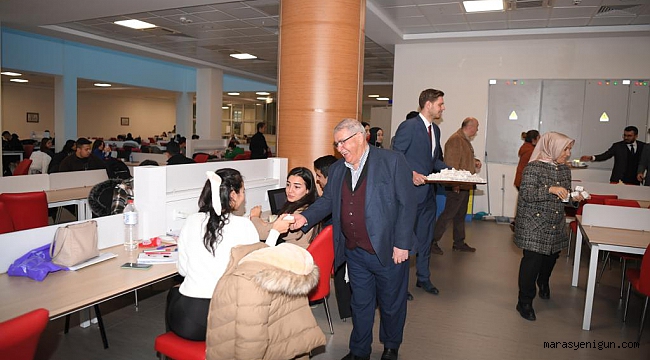 Onikişubat Belediye Başkanı Hanefi Mahçiçek, Kahramanmaraş Sütçü İmam Üniversitesi Kütüphanesi’ni ziyaret ederek, geç saatlere kadar final sınavlarına hazırlanan öğrencilere çay, kahve ve tatlı ikramında bulundu.