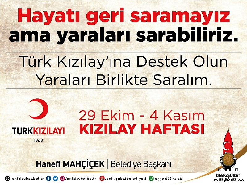 Onikişubat Belediye Başkanı Hanefi Mahçiçek 29 Ekim 4 Kasım tarihlerinde anımsanan Kızılay Haftası nedeniyle bir mesaj yayımladı.
