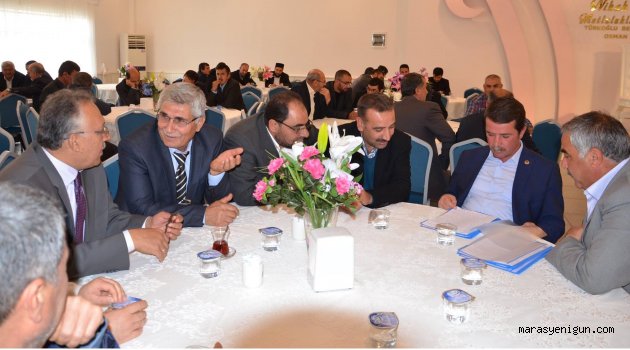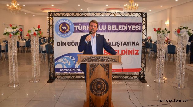\r\n\r\nTürkoğlu Belediyesi Nikah Sarayı ve Düğün salonun da gerçekleşen toplantıda, Din görevlileriyle bir arada bulunmaktan mutlu olduğunu ifade eden Başkan Okumuş, din görevlilerinin toplumda önemli bir görevi yerine getirdiğine işaret ederek, Toplum olarak her zaman camilere ve din görevlilerine büyük önem verildiğini ve saygı gösterildiğini belirtti.