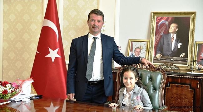 Türkoğlu Belediye Başkanı Osman Okumuş, 23 Nisan Ulusal Egemenlik ve Çocuk Bayramı’nın 98. Yıl dönümü kutlamaları çerçevesinde koltuğunu, kendisini ziyaret eden Şehit Niyazi Ergüven İlkokulu öğrencilerine devretti.