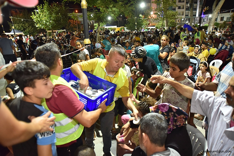 Türkoğlu Belediyesi yaz etkinlikleri kapsamındaki Türkoğlu Millet Meydanında düzenlemiş olduğu açık hava sinema günlerinin 2. haftası da vatandaşlar yoğun ilgi gösterdi.Birçok alanda olduğu gibi sosyal belediyecilikte de öncü ve örnek çalışmalar yapan hizmetleriyle, vefasıyla, iyiliği ve insanlığı ile halkın gönlünde taht kuran Osman Okumuş Başkanlığındaki Türkoğlu Belediyesi yine ailelerin ve çocukların gönüllerince eğlendiği bir etkinliğe daha imza attı.Türkoğlu Millet Meydanını dolduran vatandaşlara sınırsız ikramlar sunulurken, açık hava sinemasında geçen hafta çocuklara özel olan program, bu hafta gençlere ve yetişkin vatandaşlara yönelik coşkulu bir program gerçekleştirildi.Türkoğlu Belediyesi tarafından tüm misafirlerimize özel pamuk şeker, dondurma, patlamış mısır, meyan şerbeti vb. ikramların yanı sıra palyaço, şişme oyun parkuru gibi çeşitli eğlenceli oyunlarla sergilendi.Filmin sonrasında ise yapılan çekilişlerle vatandaşlara bisiklet, futbol topu, satranç takımı, forma hediye edildi.Unutulmaz bir gün yaşayarak gönlünce eğlenen ve açık havada sinema keyfi yaşayan tüm vatandaşlar Türkoğlu Belediye Başkanı Osman Okumuş'a teşekkür ettiler.Düzenlenen etkinlikle ilgili açıklamalarda bulunan Belediye Başkanı Osman Okumuş, ”Millet meydanı yaz sinemaları sezonunu geçen hafta açtık, Eylül’ün ilk haftasına kadar devam edecek. Bizim bu yaştaki insanların nostalji olarak baktığı ama yeni jenerasyon gençlerimizin bilmediği yaz sineması etkinliğini Türkoğlu’na getirdik.Türkiye’nin gündeminde olan sinema filmlerini burada oynatıyoruz. Biz büyük projeleri yaparken çocuklarımızı ve gençlerimizi de unutmuyoruz, birazda farkımız o.Yaz sineması gibi direk gençlerimize dokunacak etkinlikleri planlıyoruz. Yani gençlerimizin ve çocuklarımızın ne talepleri varsa uygun olduğu müddetçe yerine getiriyoruz. İlkokul birden başlayarak çocuklarımız gençlerimizi, Konya’ya, Çanakkale’ye, İstanbul’a, Karadeniz’e, dershaneye, etüt merkezlerine gönderiyoruz. Başarılı öğretmenlerimizi gezilere gönderiyoruz.Millet meydanında hep gitar çalan, bağlama çalan gençlerimiz olsun, çocuklarımız olsun, çalıyorlar çok şükür. Buranın devamı olan 2. Etap millet meydanını yapıyoruz. Orada da yine etkinlik olacak, yine devamı olan 3. Etabı yapacağız. Türkiye’nin en güzel meydanı olacak. Biz başkandan ziyade gençlerin ve çocukların Osman abisiyiz. Şehrimizde yaşayan insanların en güzel şekilde yaşamasını sağlamaya çalışıyoruz,etkinliğimize ilgi gösteren binlerce vatandaşlarımıza teşekkür ediyorum.Tüm hemşerilerimizi haftaya yine aynı saatte tekrar bekleriz.” Dedi.