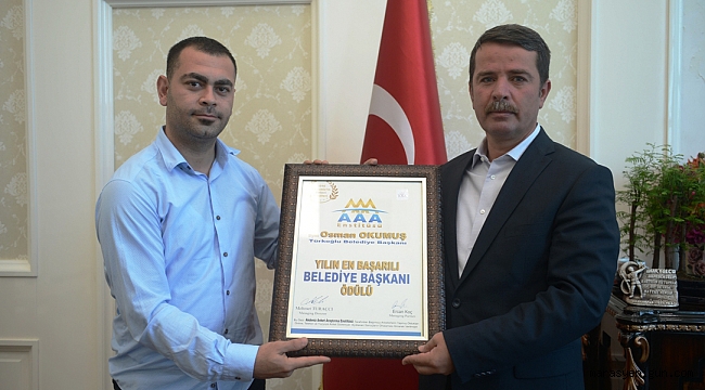 Türkoğlu Belediye Başkanı Osman Okumuş, “2016 Yılının En Başarılı Belediye Başkanı ödülünü aldı ” seçildi. Akdeniz Anket Araştırma Enstitüsü tarafından 2016 Akdeniz'in Enleri Ödülleri neticesinde yapılan araştırma sonucunda Başkan Okumuş Akdeniz Bölgesinde “Yılın en Başarılı Belediye Başkanı' ödülüne layık görüldü.Ödülü alan Türkoğlu Belediye Başkanı Osman Okumuş; 2016 Yılı içerisinde Akdeniz Bölgesinin En iyi belediye başkanlarının seçiminde Türkoğlu ilçemiz başarılı bulunmuş. Bu vesile ile anketi yapan Akdeniz anket Araştırma Enstitüsü ekibi belediyemizi ziyaret ettiler. Öncelikle bizi bu ödüle layık gördükleri için kendilerine çok çok teşekkür ediyorum.Tabi Türkoğlu ilçemiz geldiğimiz üç yıldan beri çalışmaları açısından büyük bir ivme kazandı. Gerek konut inşaat çalışmalarında, gerek park, bahçe, sportif alanlarda ve sosyal belediyecilik alanlarında gerçekten 70 bin nüfusu olmasına rağmen büyük çığır açacak projelere imza attık. Bundan sonraki hedeflerimizde de Türkoğlu'muzun kendi kendine yetebilen, halkın mutlu bir şekilde yaşadığı bir ilçe haline getirmek, marifet iltifata tabidir.Bu yaptığımız çalışmalar neticesinde Akdeniz Anket Araştırma Enstitüsünün bize verdiği ödülden dolayı kendilerine çok çok teşekkür ederim, diyerek konuştu.