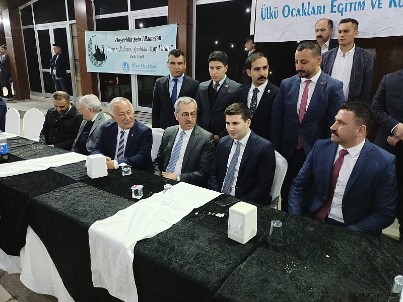 Kahramanmaraş Manzara Kafe’de düzenlenen etkinliğe, Ülkü Ocakları Genel Başkanı Ahmet Yiğit Yıldırım, Kahramanmaraş Büyükşehir Belediye Başkanı Hayrettin Güngör, İl Emniyet Müdürü Salim Cebeloğlu, Çağlayancerit Belediye Başkanı Hanifi Sarıaltun ile şehit aileleri, gazilerin yanı sıra çok sayıda davetli katıldı.Kur’an-ı Kerim tilavetinin ardından yapılan iftar sonrası program, Ülkü Ocakları İl Başkanı Dursun Nar’ın açılış konuşmasıyla başladı.Ardından kürsüye gelen Ülkü Ocakları Genel Başkanı Ahmet Yiğit Yıldırım, Cumhur İttifakının önemine ve terörle mücadele yaşanan gelişmeler hakkında açıklamalarda bulundu.Dünya genelinde Ülkü Ocakları’ndan çalışmalarından da bahseden Başkan Yıldırım, “Ocaklarımız Türkiye'nin dört bir yanında önemli ve çalışmalarını devam ettiriyor. Bir gençlik teşkilatı sadece Türkiye'nin değil, Dünyanın en büyük gençlik teşkilatı olarak çalışmalarımızı sürdürüyoruz. Bugün Cumhur ittifakı Türkiye için çok önemli kazanımlar da bulunuyor. Ülkü Ocakları tarihimizin en güçlü dönemini yaşıyor. Aynı zamanda bugün terörle en güçlü dönemi yaşıyoruz. Artık PKK’nın ve diğer terör örgütlerinin beli bükülmüş durumda. Nerede bir terörist varsa sınır içinde sınır dışında güvenlik güçlerimiz tarafından imha ediliyor. Liderimiz Devlet Bahçeli bizim şehitlerimize olan sözümüzdür diyerek, bu mücadeleyi başlattı ve bütün terör örgütlerinin kökünü kazımak için bugün ülküdaşlarımız görevlerinin başında ciddi bir mücadele veriyor. Çok şükür ki, karakollarımız basılıyor, sokaklarımızda canlı bombalar patlamıyor, sokak eylemleri meydana gelmiyor. Hamdolsun ki, içeride ve dışarıda ne kadar terörist varsa güvenlik güçlerimiz tarafından imha ediliyor. Hamdolsun ki, terörle mücadelede Cumhuriyet tarihinin en önemli sürecini yaşarken, dış politikada da en güçlü dönemimizi yaşıyoruz” diye konuştu.Daha sonra Ülkü Ocakları İl Başkanı Dursun Nar, günün anısına Başkan Yıldırım’a çeşitli hediyeler takdim ederken, Kahramanmaraşspor Kulüp Başkanı Mehmet Fatih Ceyhan’da, takımın kırmızı çubuklu formasını hediye etti.İftar programı, Semazen Gösterisinin ardından sona erdi.