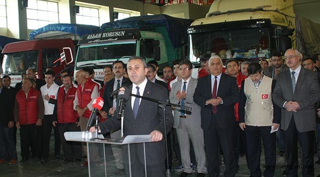 \r\n\r\nKonuşmaların ardından İl Müftüsü Muhammet Gevher, bereket duası yaptı ve tırlar yola çıkarıldı.
