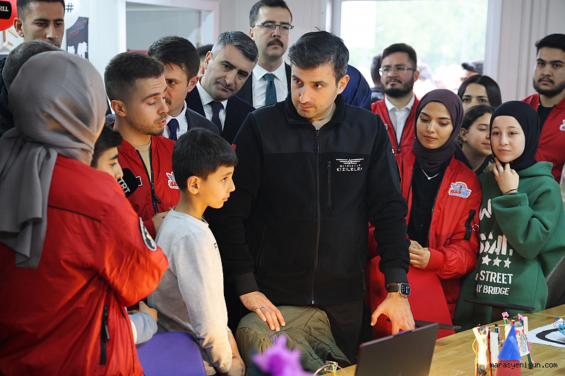 Baykar Konteyner Kent'e gelen Türkiye Teknoloji Takımı Vakfı Mütevelli Heyeti Başkanı Selçuk Bayraktar, 'deneyap' atölyesindeki depremzede öğrencilerin çalışmalarını inceledi