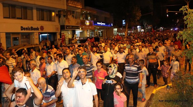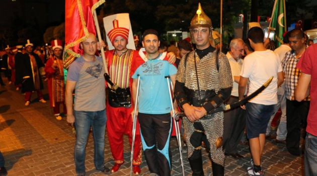 Cumhurbaşkanı Recep Tayyip Erdoğan'ın 15 Temmuz Darbe Girişimi'ne karşo halkı meydanlara daveti üzerine darbe girişimi gecesinin ilk gününden beri sokaktan ayrılmayan Pazarcık halkı demokrasi nöbetinin 6. gününde Belediye Başkanı Yakup Hamdi Bozdağ tarafından getirilen Kahramanmaraş Büyükşehir Belediyesi'nin Mehter Takımı Pazarcıklı'lara unutulmaz bir gece yaşattı.