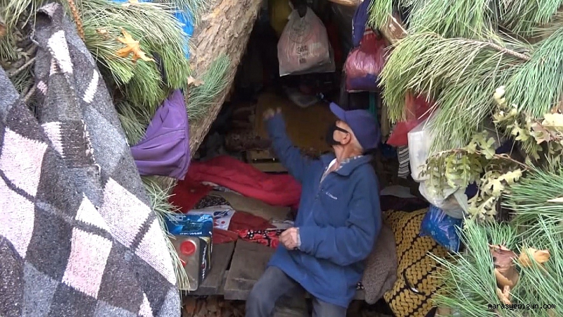Çınar kovuğunda yaşadığını ve zor olduğunu anlatan Hüseyin Sarıca, “Biz çocukluktan beri buradayız, kış mevsiminde kar yağdığında kepçe buraları açıyor. Önceden küçükbaş hayvanlarımız vardı ve şu anda onlar da yok. Tarlalarımız ormana verildi. Eşim bana yorgan ve battaniye gibi şeyler vermez ben alırım. Bu ağaç evde yaşarım” dedi.