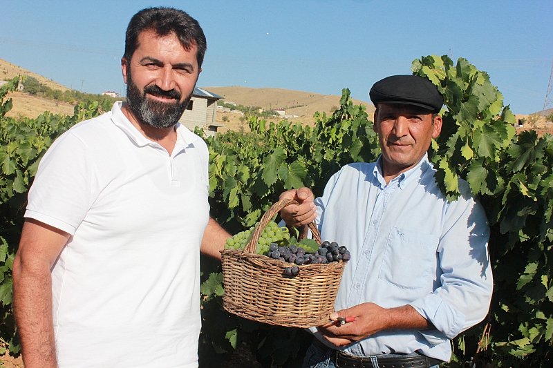 Kahramanmaraş’ın Afşin İlçesinde çiftçilik yapan Tahsin Benli, kendi gayretleriyle 8 dönüm arazi üzerinde oluşturduğu Üzüm Bağlarında Şeker Hastalığına iyi gelen Alfanso Üzüm ve yörenin meşhur Kabarcık üzümünü yetiştiriyor. Geleneksel bağcılıktan yenilikçi bir üretime geçen Afşinli çiftçi 4 yılda oluşturduğu Bağda Üzümlerin hasadına başladı.Daha çok Ege bölgesine has olarak Afşin’e bağlı Başüstü mahallesinde Çit üzerinde yetiştirilen Üzümler Afşin’in bereketli topraklarında hayat bulurken Afşinli çiftçi Tahsin Benli,emeklerimizin karşılığını fazlasıyla aldık.Bölgede ki çiftçilerimize de tavsiye ederim dedi.Basın Mensuplarını sorularını yanıtlayan Tahsin Benli, Daha önce şirketlerde çalışıyordum.Kışın şirketlerde çalışıyor yaz aylarında da yine çiftçilikle uğraşıyordum. Bir gün Televizyonda bir Belgeselde çiftçinin bu üzümleri yetiştirdiğini gördüm. Neden bende yapmayayım dedim ve başladım. 4 yılda bu gördüğünüz 8 dönüm arazide 4 dönümünde Alfanso kalan 4 dönümünde de Kabarcık üzümü yetiştirmeye başladım. Elbette emek verdik ama emeğimizin karşılığını fazlasıyla aldık dedi.Ürettiği üzümlerin hasadına başlayan Afşinli çiftçi Tahsin Benli, üzümleri Afşin’de kapalı ve açık sebze pazarında bizzat kendisi satıyor. Manavlara da üzüm verdiğini belirten Benli,isteyen vatandaşlarımız 0 543 268 2446 numaralı hattan bana ulaşabilir kendileri Bağımıza kadar gelebilir ve kendi elleriyle seçerek üzüm satın alabilirler dedi.İlaç kullanmadan üzüm yetiştiriciliği yaptığını belirten Tahsin Benli, bizim memleket kış memleketi. Soğuk vurmasın diye bu çubukları Kış aylarında toprağa gömüyorum. Topraktan çıkardıktan sonra da toz kükürt kullanıyorum ve ilaç kullanmadan sofralara ulaşmasını sağlıyorum dedi.Bölge çiftçisi geleneksel üretimler haricinde yenlikçi üretime de geçmeli diyen Afşinli Çiftçi Tahsin Benli, Manisa gibi,Ege bölgesinde ki gibi kolay işçilik yok burada. İşçiliği zor. Hava ve iklim şartları ağır. Ama buna rağmen bu bölgede biz bu üzümü kaliteli ve lezzetli şekilde yetiştirmeyi başardık. Biz ürettik sıra tüketicilerimizde. Müşterilerimiz Yerli ürünler tercih ederek bizlere katkı sunabilirler dedi.