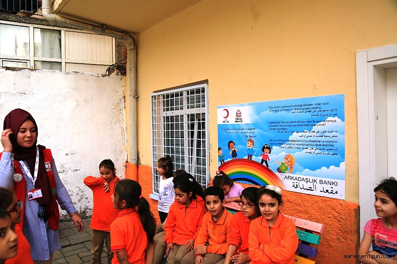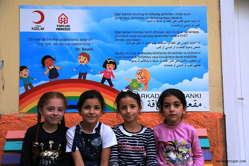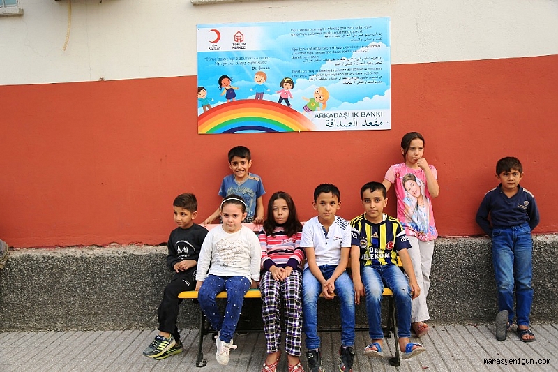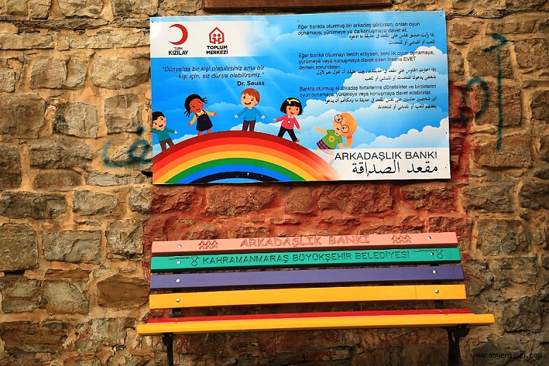 Kahramanmaraş Büyükşehir Belediyesi tarafından Türk Kızılay Toplum Merkezi programı çerçevesince yapılan protokol gereği Suriyeli öğrencilerin devam ettiği okullara yerleştirilen Arkadaşlık Bankı, çocuklar arasında dayanışma ve kaynaşmayı amaçlıyor.Kahramanmaraş Büyükşehir Belediyesi ve Türk Kızılay arasında yapılan protokole ilişkin verilen bilgide: “Çocuklar arasında uyumu sağlamak, okul içerisinde kaynaşmayı sağlamak, birlik ve beraberliği geliştirmek, sevgi ve dostluğu yaygınlaştırmak amacıyla, 5 Nisan Ortaokulu, Turan İlkokulu, Şehit Mıllış Nuri Ortaokulu, Zeki Karakız Ortaokulu, Dumlupınar İlkokulu, Dumlupınar Ortaokulu, İstiklal Ortaokulu, Kurtuluş Kız İmam Hatip Ortaokulu, Rıdvan Hoca İmam Hatip Ortaokulu, Muallim Hayrullah Ortaokulu, Sezai Karakoç İlkokulu, Ziya Gökalp İlkokulu, Ayşe Gümüşer İlkokulu, Onikişubat İlkokulu ve İMKB Doğukent İlkokulu olmak üzere belirtilen 15 okulda Arkadaşlık Bankı Projesi’ni faaliyete geçirmiş bulunmaktayız” denilerek bilgi verildi.Proje gereği Suriyeli çocukların eğitim-öğretim gördüğü okullarda okul bahçelerine yerleştirilen ‘Arkadaşlık Bank’larının üst kısımlarına hem Türkçe hem de Arapça yazılar yazılarak çocukların ilgisi çekiliyor.