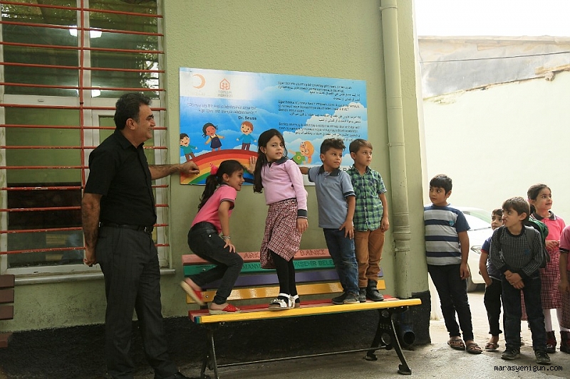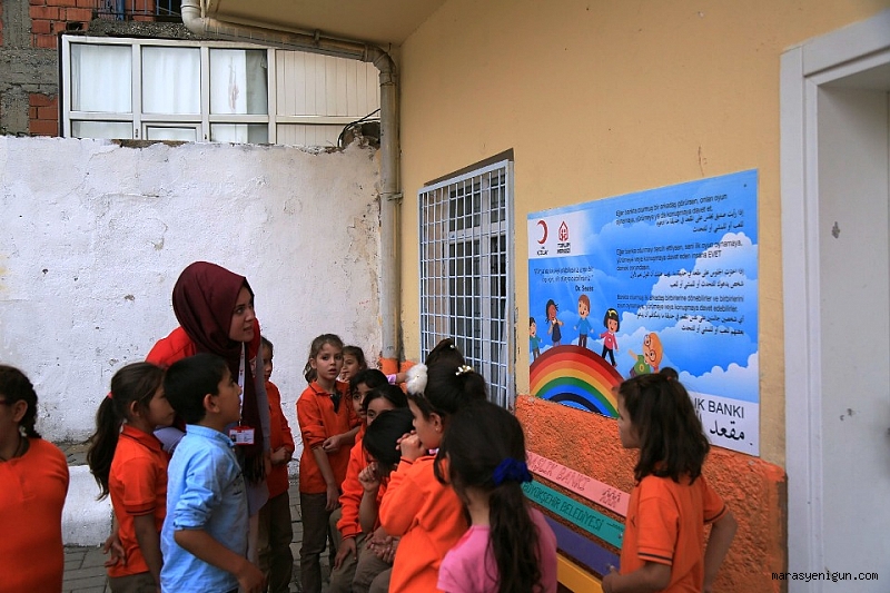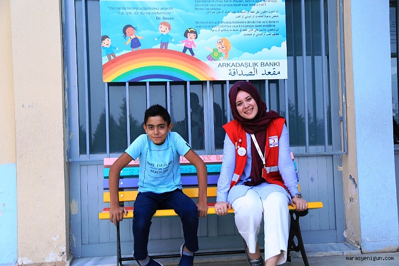 Kahramanmaraş Büyükşehir Belediyesi ve Türk Kızılay işbirliği ile ortaklaşa gerçekleştirilen proje kapsamında okullara Arkadaşlık Bankı yerleştirildi.