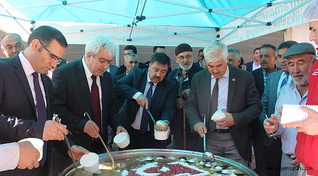 Kahramanmaraş Büyükşehir Belediyesi Sağlık ve Sosyal Hizmetler Dairesi Başkanlığı Sosyal Hizmetler Şube Müdürlüğü tarafından hazırlanan 3 bin kişilik aşure vatandaşlara dağıtıldı.Aşure programına Kahramanmaraş Büyükşehir Beledi Başkanvekili Ramazan Tutlu, Ekinözü Kaymakamı Fatih Sayar, Ekinözü Belediye Başkanı Nursi Çeleğen ile meclis üyeleri, daire başkanları, muhtarlar ve vatandaşların katıldı.Burada bir açıklama yapan Başkanvekili Ramazan Tutlu: “ Muharrem ayı dolayısıyla düzenlediğimiz aşure etkinlikleri kapsamında Ekinözü ilçemizdeyiz. Büyükşehir Belediye Başkanımız Fatih Mehmet Erkoç’un selamlarını vatandaşlarımıza ilettik. Bu tür etkinliklerimizle birlik ve beraberliğimizin pekişmesi adına devam ettirmekteyiz.Toplumun birbiriyle kaynaşması ve dayanışma içerisinde olması bu tür etkinliklerin önemini bir daha ortaya çıkarmaktadır. Bu tür etkinliklerimizin bizim memleketimiz adına birlik ve beraberlik ruhu taşıması adına çok önemli olduğunu düşünüyoruz.Şu anda da Büyükşehir meclis üyelerimizle, kaymakamımız ve ilçe belediye başkanımızla, daire başkanlarımız ve muhtarlarımızla ve de vatandaşlarımızla hep bir araya geldik. Bunun mutluluğu ve gururu içindeyiz” dedi.Ekinözü İlçe Kaymakamı Fatih Sayar ise yaptığı açıklamada: “Büyükşehir Belediyemizin düzenlediği Aşure etkinliğindeyiz. Muharrem ayı tarihimizde ve dinimizde ayrı bir yeri olan bir aydır. Bundan dolayı bizler Muharrem ayında kendimizi gözden geçirme, özümüze dönme durumunda kalıyoruz. Bu manada da Büyükşehir Belediyemizin aşure etkinliğinin buna katkı sunacağını düşünüyor ve Büyükşehir Belediyemize teşekkür ediyorum” diye konuştu.Ekinözü Belediye Başkanı Nursi Çeleğen ise yaptığı açıklamada: “Mübarek Muharrem ayımızın son günlerine yaklaşıyoruz. Büyükşehir Belediyemiz ile Ekinözü Belediyemizin ortaklaşa düzenledikleri aşure programındayız. Vatandaşlarımıza çok güzel aşure ikram ediyoruz. Bu vesile ile Büyükşehir Belediye Başkanımız Sayın Fatih Mehmet Erkoç beye çok teşekkür ediyorum. Bu günler güzel günler ve mutluluk verici günler. Vatandaşlarımızın da yoğun bir ilgisi var. Katılan herkese teşekkür ediyor, saygılar ve sevgiler sunuyoruz” diye konuşarak teşekkürlerini ifade etti.