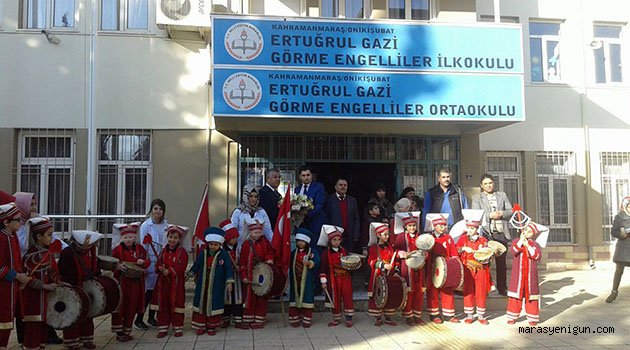 \r\n\r\nErtuğrul Gazi Görme Engelliler Okulu ziyaretinde görme engelli öğrencilerin mehter gösterisi ve şiir okumasının ardından çocuklara patlamış mısır, pamuklu şeker ve çeşitli hediyeler dağıtıldı.